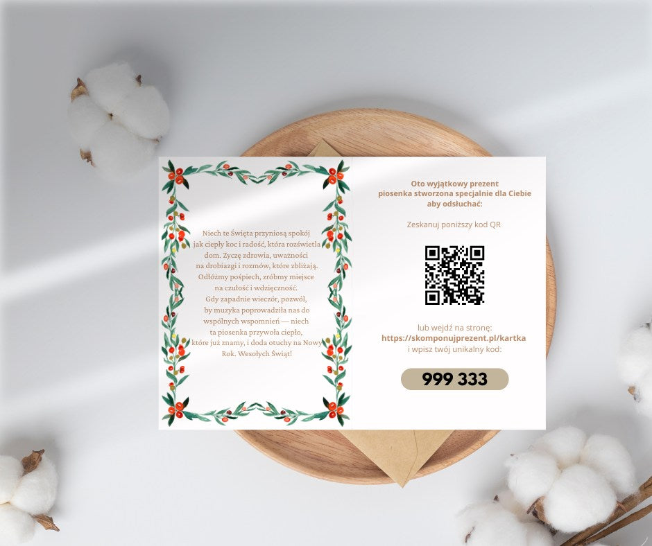 Muzyczna kartka to elegancka, personalizowana kartka, która prowadzi prosto do Twojej piosenki stworzonej w SkomponujPrezent.pl.